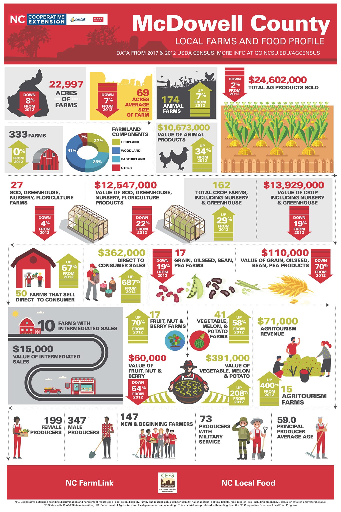 North Carolina is one of the most diversified agriculture states in the nation. The state’s 46,418 farmers grow over 80 different commodities, utilizing 8.4 million of the state’s 31 million acres to furnish consumers a dependable and affordable supply of food and fiber. The state ranks eighth nationally in Total Market Value of Agricultural Products Sold. Net income per farm in the state is over $86,645.