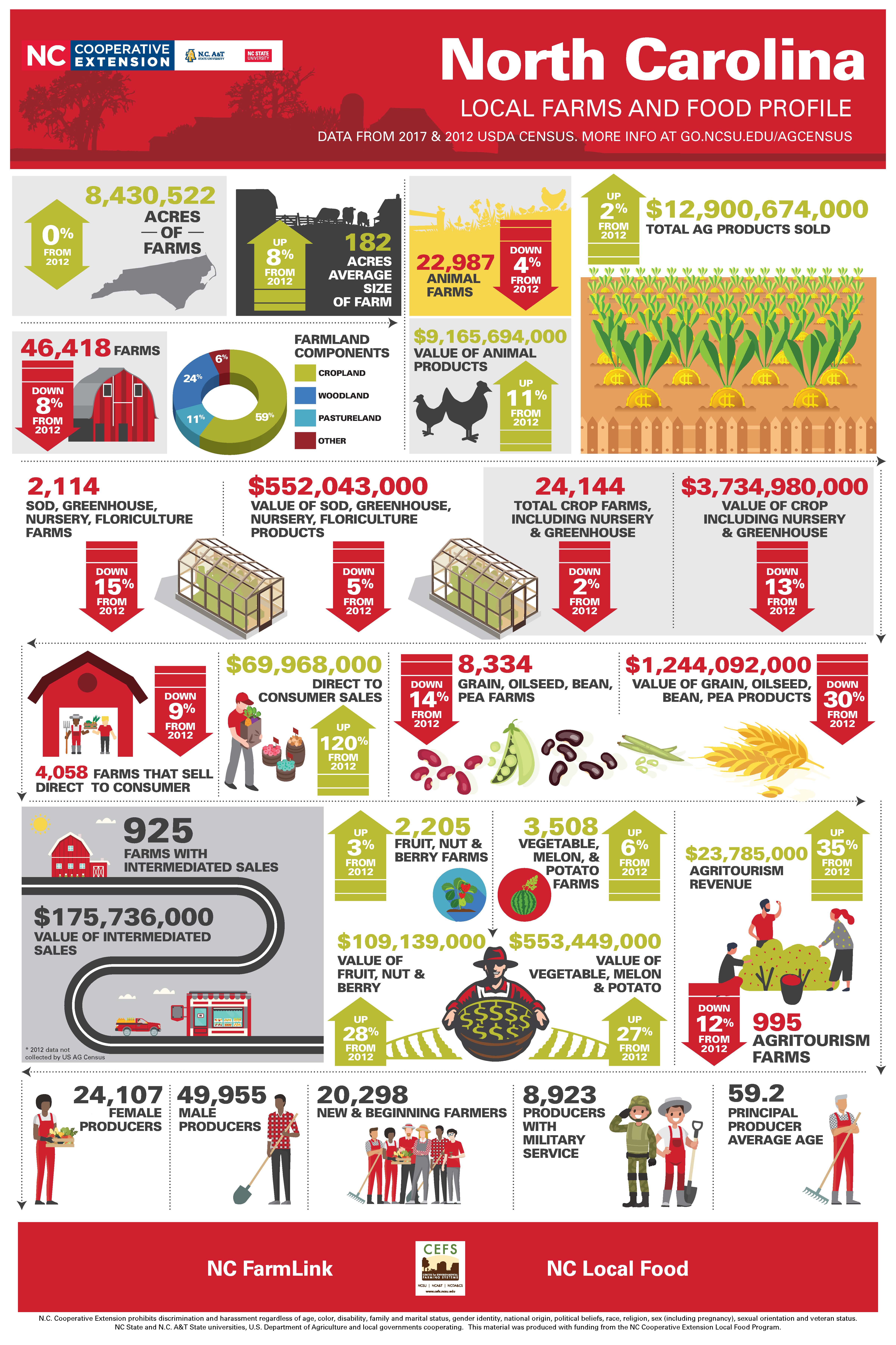 The Local Food and Farms infographics are designed for economic developers, planners, local food advocates, and community members to understand the impact of their county and region to the overall NC agricultural economic impact. The economic indicators provided here can help local governments as they design ways to support agricultural businesses as key components of vibrant and resilient, local and rural economies. Each region in North Carolina presents a unique set of opportunities for sustainable economic growth and entrepreneurship.